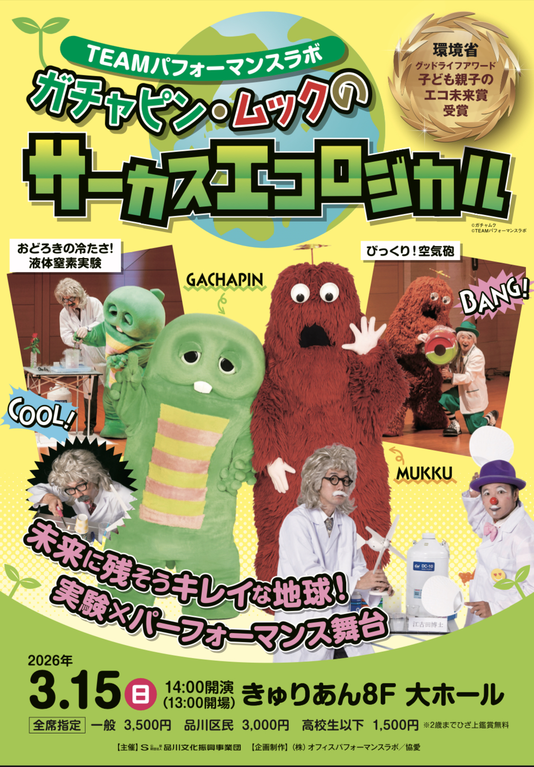 TEAMパフォーマンスラボのサーカスエコロジカル公演にガチャピン・ムックが一緒に!そこへパフォーマーとして出演させていただきます⌒◎
